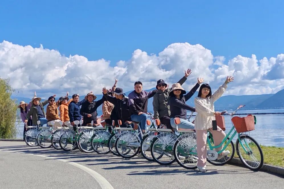 在喜洲古镇,大家亲身体验白族扎染技艺,感受非遗文化的魅力;在s湾生态廊道,音乐巡游车上的歌声传递着团队的温暖。
