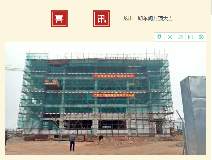 半岛(中国)股份落户龙川一期车间封顶大吉